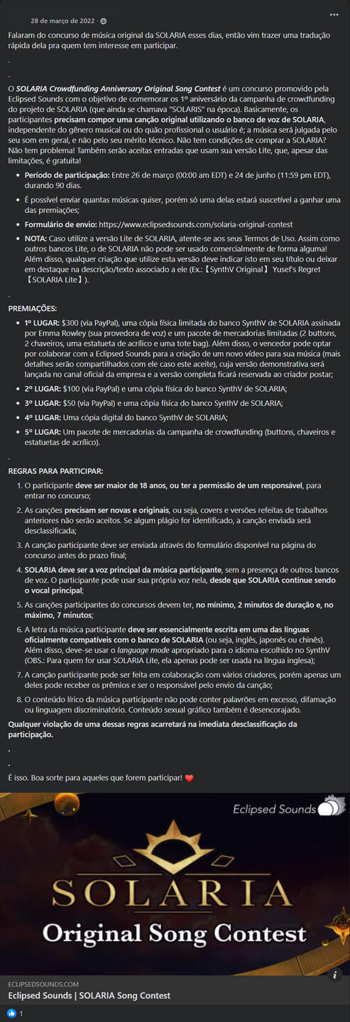 Escritora desde meados de 2017, minha jornada se iniciou com postagens simples e despretensiosas em uma rede social. A partir disso, minha escrita foi aperfeiçoada e meu desejo em trazer informação às pessoas aumentou cada vez mais.Atualmente, sou pós-graduada em Jornalismo Digital e trabalho como freelancer nas horas vagas. Além de postagens em grupos/comunidades, possuo um blog chamado Notas Sintéticas e sou uma das colaboradores da comunidade Vocal Synth Brasil, ambos voltados a sintetizadores de voz.